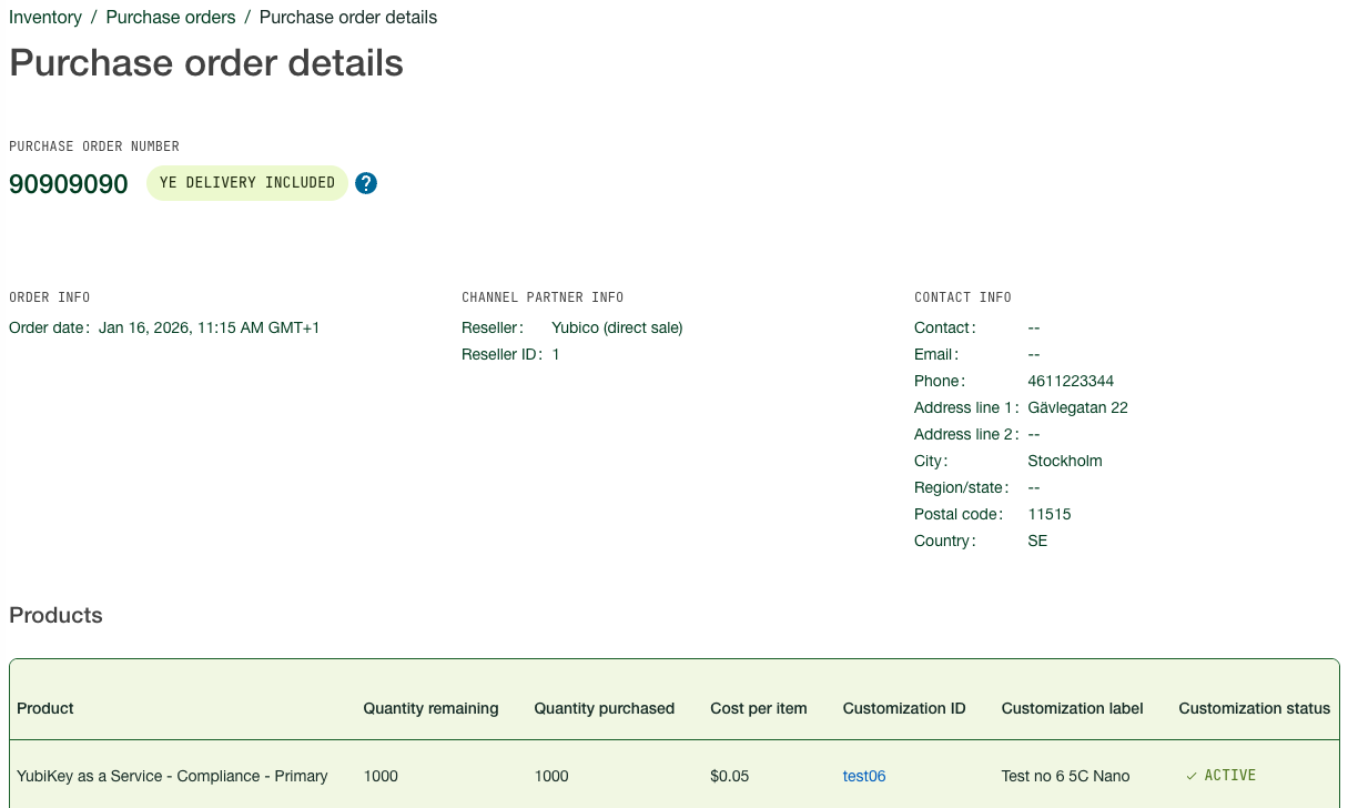 If you as a customer have purchased inventory directly from Yubico as well as from a reseller, you will be able to see both those “buckets” of inventory.