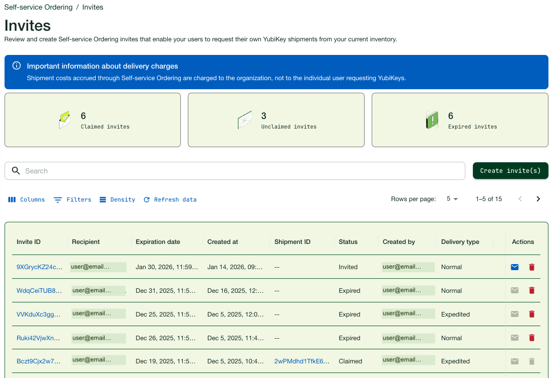 The following outlines the steps to set up Self-service Ordering and manage invites. This is typically done by an IT administrator responsible for distributing YubiKeys in an organization.