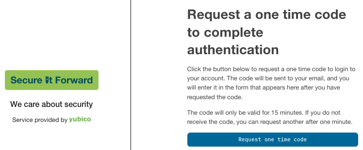 Recipients do not need to have a Yubico account, you only provide their email address when creating their invite. An email with a link to your branded Self-service Ordering web page is sent to the recipient, who authenticates using a one-time code (OTC) also sent to the email address.